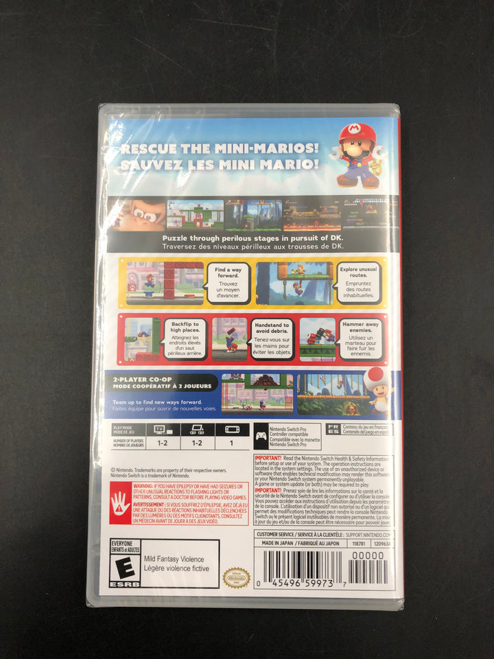 Donkey Kong has stolen the Mini-Marios! Solve platforming puzzles to get them back. Run, jump, and backflip your way to rescuing the stolen Mini-Mario toys in this puzzling twist on Mario action. Obstacles like spikes, moving platforms, and falling bricks stand in your way—put your brain to work and figure out the best way to reach the Mini-Marios. The rivalry that originally heated up on the Game Boy™ Advance system reignites on the Nintendo Switch system with newly-added co-op play and updated visuals. Donkey Kong has stolen the Mini-Marios! Solve platforming puzzles to get them back. Run, jump, and backflip your way to rescuing the stolen Mini-Mario toys in this puzzling twist on Mario action. Obstacles like spikes, moving platforms, and falling bricks stand in your way—put your brain to work and figure out the best way to reach the Mini-Marios. The rivalry that originally heated up on the Game Boy™ Advance system reignites on the Nintendo Switch system with newly-added co-op play and updated visuals.