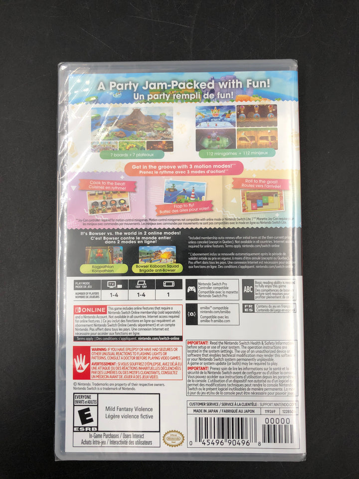 Join the latest Mario Party, a jamboree of seven boards and over 110 minigames From running through merry-go-rounds to motion-control minigolf, this jamboree is jam-packed with more minigames than any Mario Party™ game to date. With seven boards in all, you can go with the flow in Goomba Lagoon, search the mall for stars in Rainbow Galleria, or revisit the classics of Western Land and Mario’s Rainbow Castle. The Super Mario Party™ Jamboree game is coming to the Nintendo Switch™ system on October 17! Check out all kinds of additional modes, like the 20-player online* Koopathlon Race across the party board in Koopathlon, a series-first 20-player online*competition to see who can rack up the highest scores in minigames like the fast-paced Lane Change. The higher your score in each round, the faster you’ll get to the goal. Koopathlon is just one of a slew of additional modes—there’s something for every kind of Mario Party enjoyer! • Join a jamboree of over 110 minigames—the most of any Mario Party™ game to date • Seven boards to play on, including five new ones like Goomba Lagoon and Rainbow Galleria • Two classic boards are back: Western Land and Mario’s Rainbow Castle • A slew of additional modes, including several motion-control ones • Race through fast-paced minigames among up to 20 players online.